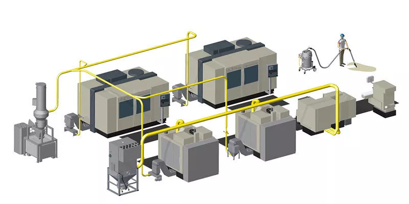 - Διατηρήστε τις διαδικασίες παραγωγής καθαρές και ελαχιστοποιήστε το χρόνο διακοπής λειτουργίας χρησιμοποιώντας, για παράδειγμα, ενσωματωμένη αναρρόφηση στην παραγωγική διαδικασία