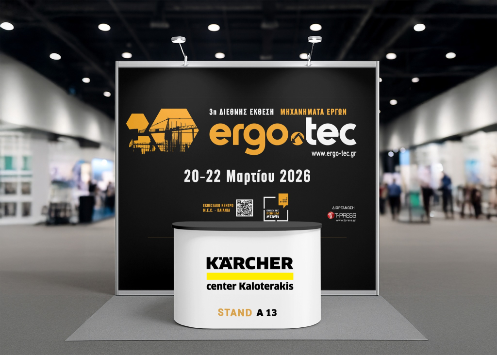 Η εταιρεία Kärcher center Kaloterakis συμμετέχει στην 3η διεθνή έκθεση ERGO-TEC 2026 – ΜΗΜΑΝΗΜΑΤΑ ΕΡΓΩΝ, την κορυφαία έκθεση στην Ελλάδα για τα μηχανήματα έργων και τον εξοπλισμό εργοταξίων.