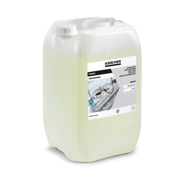 TankPro Cleaner, acidic RM 870 για τον εσωτερικό και εξωτερικό καθαρισμό δοχείων, σιλό και κάδων. Επιπλέον, αφαιρεί με ήπιο τρόπο τις μεγάλες ποσότητες εναπόθεσης αλάτων, οικοδομικού υλικού και υπολειμμάτων τροφών.
