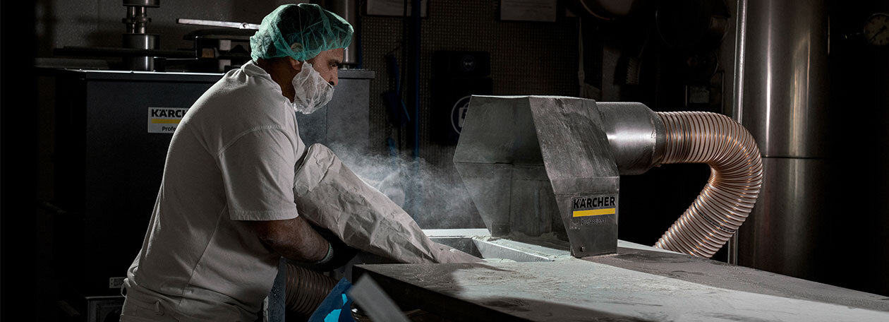 Σύστημα αφαίρεσης σκόνης ID 90/30, κατάλληλο για λειτουργία πολλαπλών βάρδιων: Αθόρυβο (64 dB[A]) και εξαιρετικά αποτελεσματικό στη συνεχή αναρρόφηση σκόνης που έχει εναποτεθεί σε επιφάνειες ή αιωρείται στον αέρα.