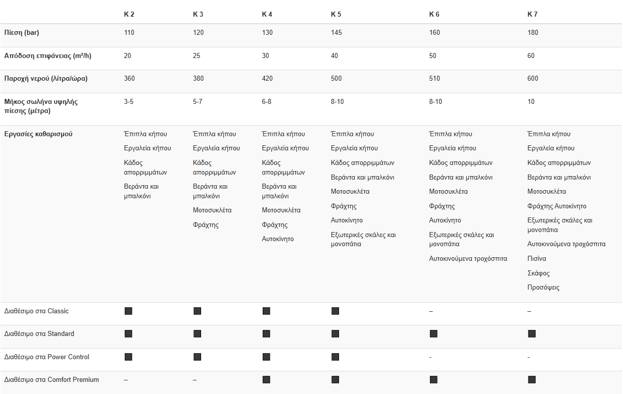Η νέα σειρά Comfort θέτει νέα πρότυπα με καινοτόμα χαρακτηριστικά, όπως η σύνδεση με την εφαρμογή (app), ο έλεγχος απευθείας από το πιστόλι ψεκασμού, η κάνη 4-in-1 Multi-Jet, το νέο σύστημα καθαριστικού 2Way!Wash™ και η σχεδιαστική φιλοσοφία Easy!Motion™. Αυτά τα μηχανήματα ενσαρκώνουν την πολυετή εμπειρία μας στην ανάπτυξη πλυστικών υψηλής απόδοσης. Η σειρά Comfort περιλαμβάνει μοντέλα των κατηγοριών K 5, K 6 και K 7.