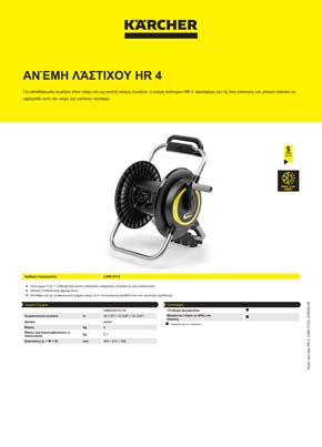 Μοναδική πρακτικότητα. Διπλή λειτουργικότητα. Αυτή η ανέμη εύκαμπτου σωλήνα χρησιμοποιείται τόσο για την αποθήκευση του σωλήνα στον τοίχο όσο και για κινητή χρήση στον κήπο. Τα ακροφύσια και οι λόγχες ψεκασμού μπορούν να κρεμαστούν στο στήριγμα τοίχου και να είναι πάντα έτοιμα. Το HR 4 μπορεί να αφαιρεθεί εύκολα από τη βάση στήριξης και μεταφέρεται άνετα χάρη στην εργονομική λαβή. Με τη βοήθεια της ελεύθερης κίνησης της μανιβέλας, ο εύκαμπτος σωλήνας κήπου μπορεί να τυλίγεται αβίαστα και να αποθηκεύεται τακτοποιημένα και προσεκτικά, χωρίς στροφές ή ενοχλητικά μπερδέματα. Το προϊόν συγκεντρώνει επίσης πόντους για τον συμπαγή σχεδιασμό του και την υψηλή σταθερότητα χάρη στο χαμηλό κέντρο βάρους του. Η ανέμη λάστιχου είναι πλήρως συναρμολογημένη και έτοιμη για άμεση χρήση. Η συσκευή είναι επίσης ανθεκτική στην υπεριώδη ακτινοβολία και τον παγετό, καθιστώντας την αρκετά ανθεκτική και μακράς διάρκειας για να αντεπεξέλθει στην καθημερινή χρήση. Η Kärcher προσφέρει εγγύηση 5 ετών.