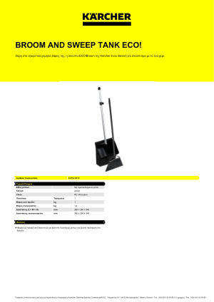 Η ECO!Broom της Kärcher προσφέρει μια αποτελεσματική λύση σκούπας 2 σε 1: Από τη μία πλευρά, διαθέτει ειδική θέση για τις τρίχες, η οποία απομακρύνει αξιόπιστα τη βρωμιά ακόμη και από δυσπρόσιτα σημεία. Από την άλλη πλευρά, είναι εξοπλισμένη με μια σπάτουλα που καθαρίζεται εύκολα και προσαρμόζεται εύκολα σε κάθε τύπο δαπέδου. Χάρη στο πολύ χαμηλό βάρος της, η ECO!Broom είναι επίσης ιδανική για σκούπισμα με το ένα χέρι. Διατίθεται με δοχείο για τη συλλογή χονδροειδούς βρωμιάς, το οποίο μπορεί να γείρει 90° και να ασφαλιστεί σε αυτή τη θέση.