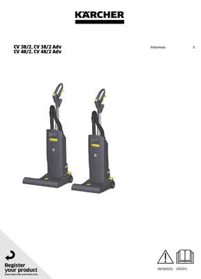 Ισχυρή, εύχρηστη ηλεκτρική σκούπα αναρρόφησης με βούρτσα, όρθιου τύπου, CV 38/2 Adv. Με υψηλή απόδοση κάλυψης επιφάνειας, ενσωματωμένα εξαρτήματα, βάσεις καλωδίου και σύστημα γρήγορης αλλαγής για το καλώδιο ρεύματος.