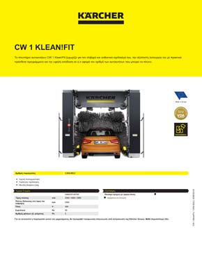 Το πλυντήριο αυτοκινήτων CW 1 Klean!Fit ξεχωρίζει για τον στιβαρό και ανθεκτικό σχεδιασμό του, την αξιόπιστη λειτουργία του με πρακτικά πρόσθετα προγράμματα και την υψηλή απόδοση σε ό,τι αφορά τον αριθμό των αυτοκινήτων που μπορεί να πλύνει.