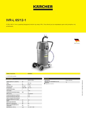 Η IVR-L 65/12-1 είναι η μικρότερη βιομηχανική σκούπα της σειράς IVR-L. Είναι ιδανική για την αναρρόφηση υγρών και/ή ρινισμάτων στη μεταλλουργία.