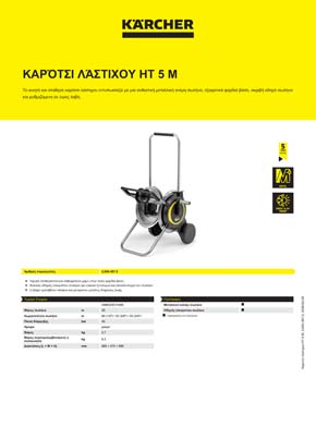 Στιβαρό και σταθερό ταυτόχρονα: Το καρότσι λάστιχου επιτρέπει την αποθήκευση του σωλήνα κήπου εξοικονομώντας χώρο και είναι πολύ βολικό στη χρήση. Χάρη στην ανθεκτική μεταλλική ανέμη, ακόμη και τα πιο βαριά φορτία δεν είναι πρόβλημα. Ο σωλήνας μπορεί να τυλιχτεί αξιόπιστα χρησιμοποιώντας την εργονομική μανιβέλα και τον στιβαρό οδηγό σωλήνα. Το καρότσι λάστιχου κερδίζει επίσης πόντους με την εξαιρετικά φαρδιά βάση του για μέγιστη σταθερότητα και ανθεκτικότητα στην υπεριώδη ακτινοβολία και τον παγετό. Χάρη στους πρωτοποριακούς μοχλούς ταχείας απελευθέρωσης, η τηλεσκοπική λαβή μπορεί να ρυθμιστεί άνετα στο σωστό ύψος ή να σπρωχτεί εντελώς προς τα κάτω. Πάνω απ’ όλα, το σπρώξιμο προς τα κάτω εξασφαλίζει αποθήκευση εξοικονόμησης χώρου. Το καρότσι λάστιχου παραδίδεται πλήρως συναρμολογημένο. Οι μονάδες αποθήκευσης σωλήνα Kärcher χαρακτηρίζονται από τη στιβαρότητα και τη μεγάλη διάρκεια ζωής τους και συνοδεύονται από 5ετή εγγύηση κατασκευαστή.