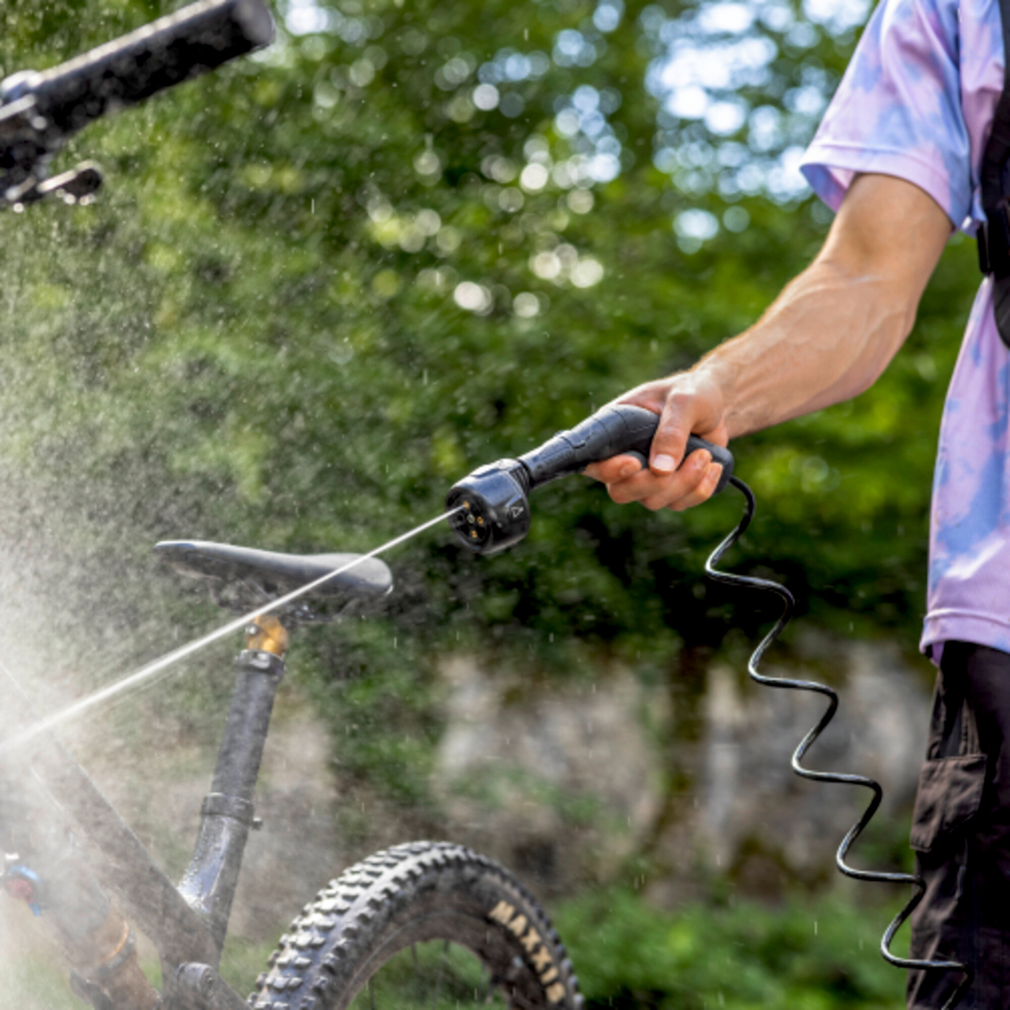 Ιδανικό για καθαρισμό ποδηλάτου: με τα αξεσουάρ στην τσάντα αξεσουάρ ποδηλάτου που είναι βελτιστοποιημένα για χρήση με τα πλυστικά μηχανήματα χαμηλής πίεσης Kärcher OC 3 και OC 4, τα ποδήλατα και ο εξοπλισμός ποδηλάτου μπορούν να πλυθούν σχολαστικά αλλά απαλά. Το Multi Jet συνδυάζει τέσσερις τύπους ψεκασμού σε ένα μόνο ακροφύσιο, το οποίο μπορεί να ρυθμιστεί απλά περιστρέφοντας την κεφαλή του ακροφυσίου. Η ειδικά διαμορφωμένη βούρτσα με μαλακές τρίχες αφαιρεί ακόμη και επίμονη βρωμιά από δυσπρόσιτες περιοχές χωρίς να γρατζουνίσει τη βαφή. Ο αφρός ψεκασμού και το απορρυπαντικό Natural Bike Cleaner με φυσικά συστατικά αφαιρούν αποτελεσματικά τη χαρακτηριστική βρωμιά του ποδηλάτου προστατεύοντας παράλληλα όλα τα εξαρτήματα. Το απορροφητικό πανί μικροϊνών εξασφαλίζει την τελική λάμψη. Τα αξεσουάρ μπορούν να αποθηκευτούν τακτικά στην παρεχόμενη τσάντα, η οποία είναι κατασκευασμένη από υδατοαπωθητικό ύφασμα και έχει ακόμη χώρο για επιπλέον μικρά αξεσουάρ.