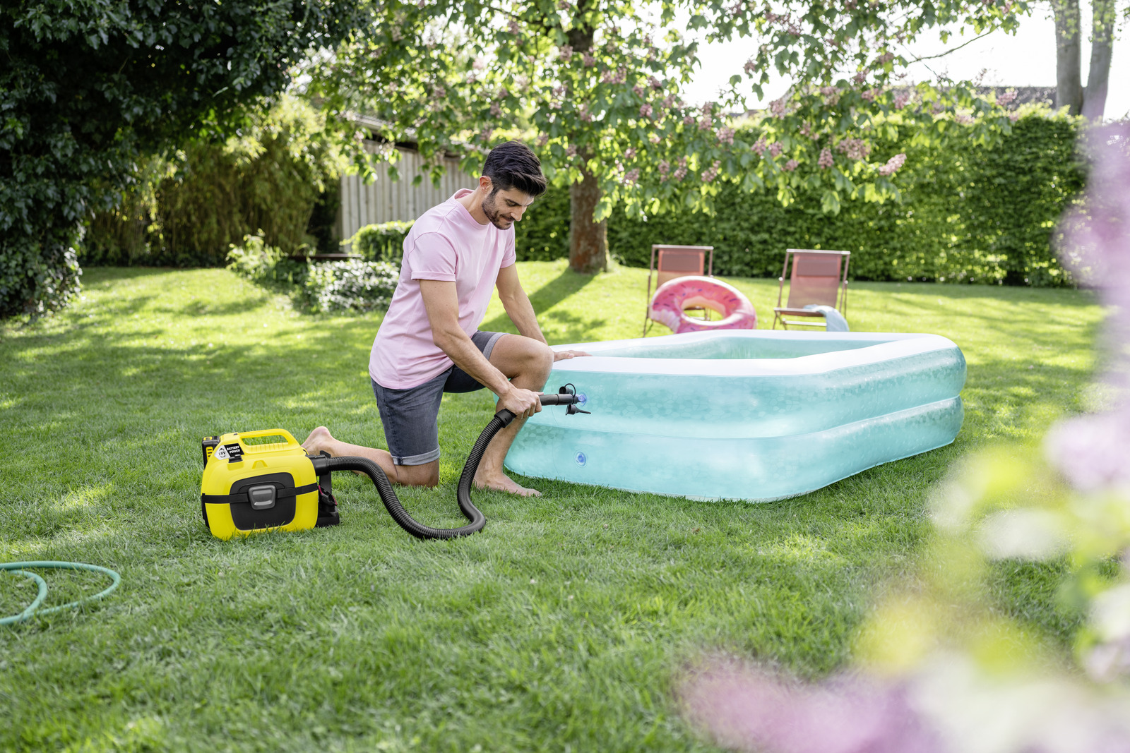 Εξασφαλίζει το αβίαστο φούσκωμα και ξεφούσκωμα αεροστρωμάτων, πισινών, φουσκωτών σκαφών κ.λπ. με τη χρήση ηλεκτρικής σκούπας υγρής και ξηρής αναρρόφησης Kärcher Home & Garden.