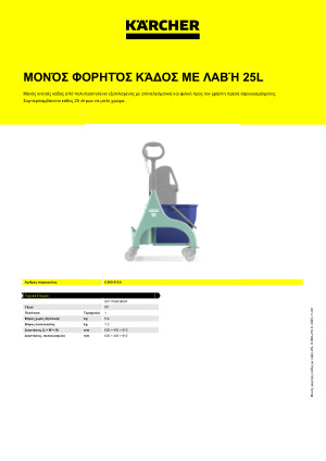 Στιβαρός, ελαφρύς και χωρίς διάβρωση: Το καρότσι μας είναι κατασκευασμένο εξ ολοκλήρου από πολυπροπυλένιο και εντυπωσιάζει με υψηλής ποιότητας υλικά και χαρακτηριστικά εξοπλισμού. Υπάρχει επίσης η φιλική προς το χρήστη πρέσα σφουγγαρίσματος, οι τροχοί 80 mm, οι προφυλακτήρες, καθώς και ένας κάδος 25 λίτρων σε μπλε χρώμα. Η συρόμενη λαβή στο πλάι επιτρέπει τον ιδιαίτερα απλό χειρισμό του ενιαίου κινητού κάδου – και σε περιορισμένους χώρους.