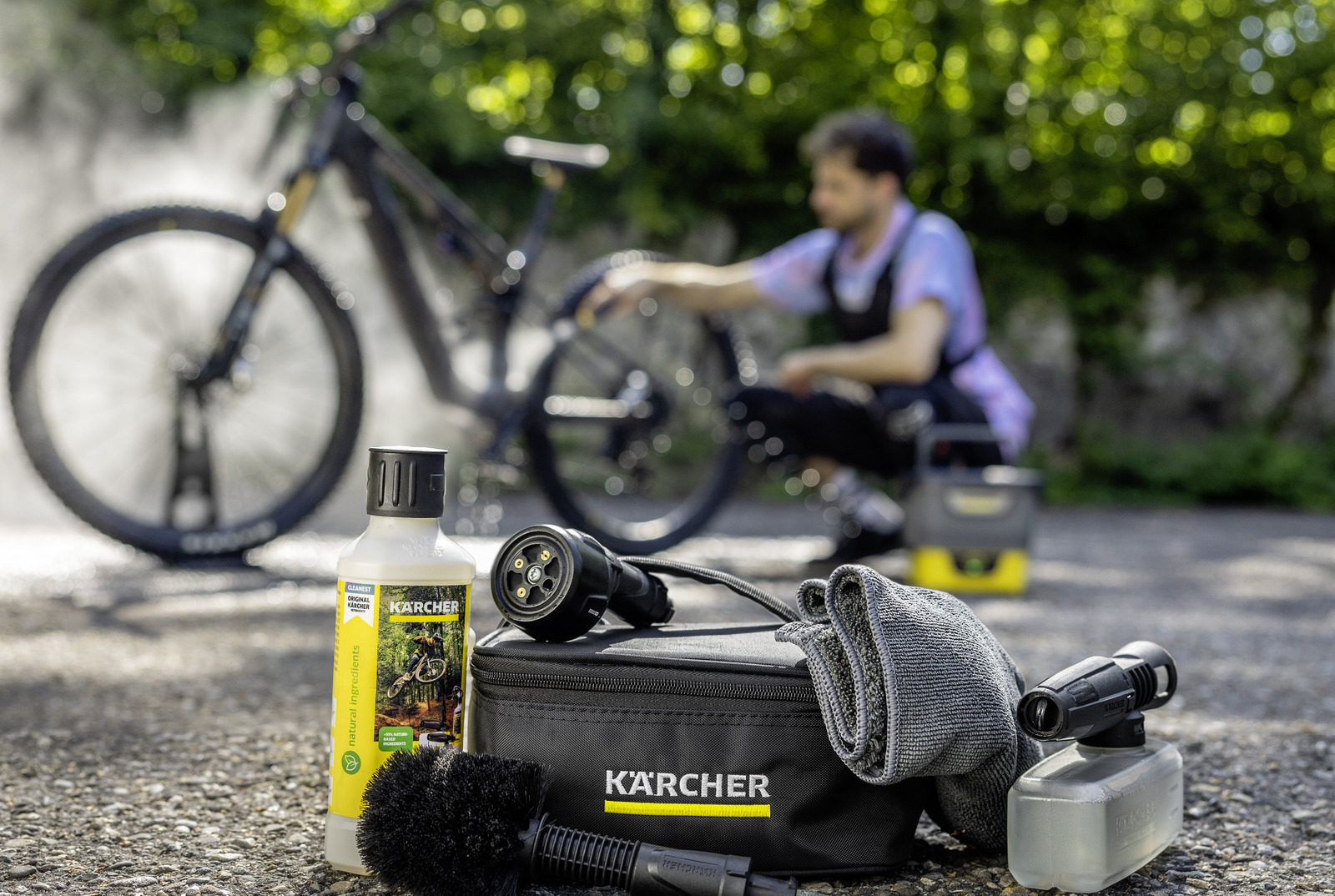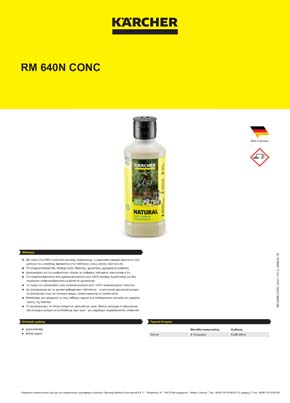 Το συμπυκνωμένο καθαριστικό ποδηλάτων RM 640N είναι κατασκευασμένο από πάνω από 99% ανανεώσιμα και φυσικής προέλευσης συστατικά και αποτελεί 2 λίτρα απορρυπαντικού για χειροκίνητη εφαρμογή. Ιδανικό για εφαρμογή με το ακροφύσιο αφορύ πλυστικών μεσαίας και χαμηλής πίεσης Kärcher. Ως ανταλλακτικό για το φυσικό καθαριστικό ποδηλάτων, το συμπύκνωμα μπορεί να χρησιμοποιηθεί για την αναπλήρωση του μπουκαλιού ψεκασμού τέσσερις φορές. Το συμπύκνωμα έχει διαμορφωθεί ειδικά για τον καθαρισμό εξειδικευμένων ποδηλάτων (π.χ. ηλεκτρικά ποδήλατα, ποδήλατα πεταλιών, ποδήλατα βουνού ή αγωνιστικά ποδήλατα). Η σύνθεση έχει δοκιμαστεί για συμβατότητα υλικών και είναι κατάλληλη για ευαίσθητα υλικά όπως άνθρακας, αλουμίνιο ή καουτσούκ. Έχει υψηλή ικανότητα διάλυσης ρύπων, αλλά εξακολουθεί να ξεπλένεται εύκολα για οικονομική εφαρμογή νερού.