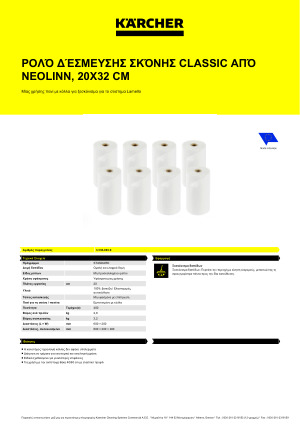 Κατασκευασμένο σε ρολό και τμηματικά διάτρητο για οικονομικούς και περιβαλλοντικούς λόγους, το πανί δέσμευσης σκόνης neolinn CLASSIC της Kärcher εντυπωσιάζει τους χρήστες με ξεσκόνισμα χωρίς υπολείμματα σε όλα τα λεία δάπεδα, επιφάνειες και αντικείμενα. Αυτό οφείλεται στο γεγονός ότι φέρει μια ειδική κόλλα που δεν αφήνει υπολείμματα και είναι ιδιαίτερα κατάλληλο για γυαλιστερές επιφάνειες.