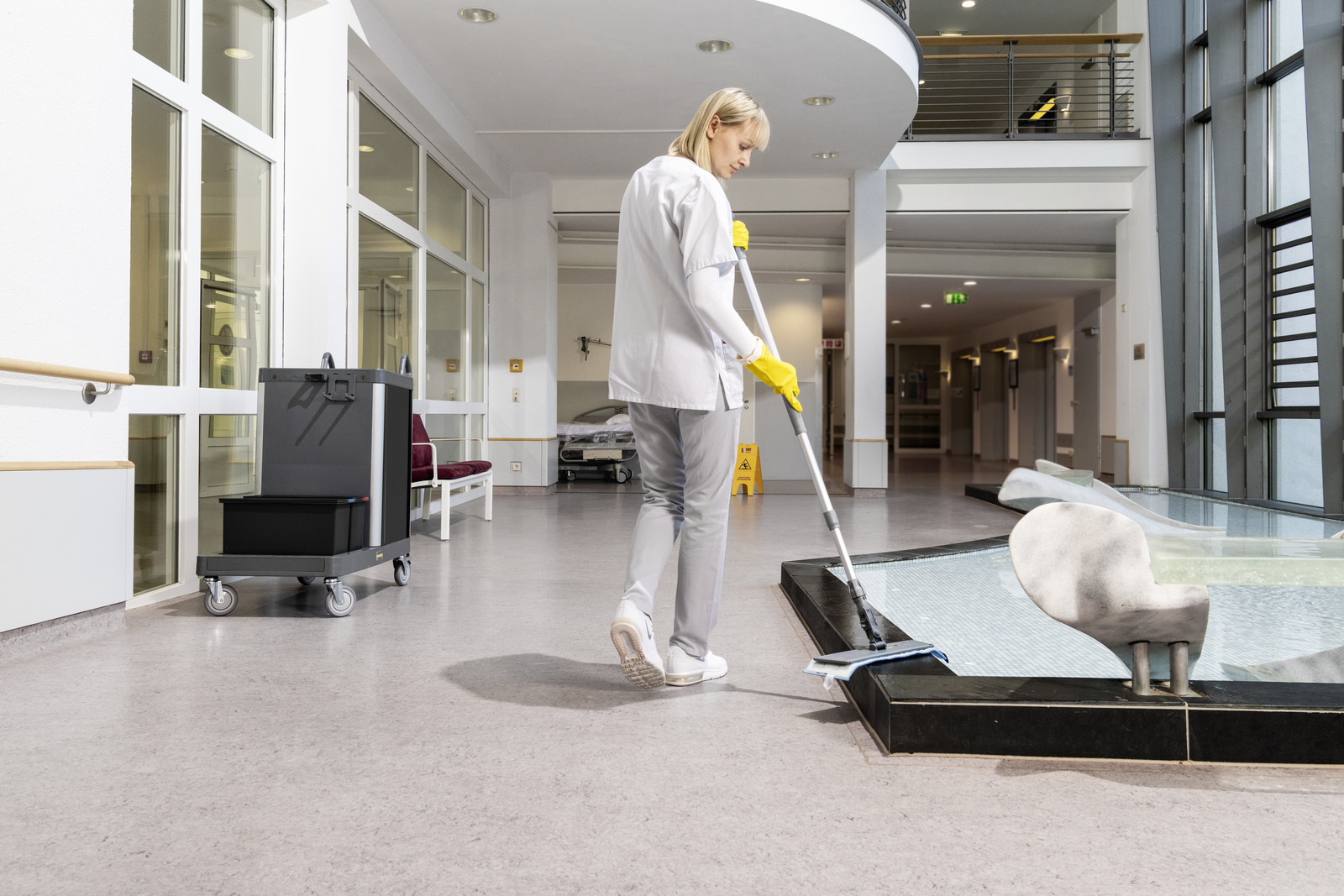 Το μεγάλο καρότσι καθαρισμού FM ExpertPro 100/ W με σύστημα διπλού κάδου και πρέσα γενικής χρήσης είναι ιδανικό για οικονομικό καθάρισμα. Η εύκολα προσβάσιμη μονάδα απόρριψης μπορεί να μετακινηθεί πάνω και κάτω όπως απαιτείται και μπορεί να φιλοξενήσει σακούλες κάδου διαφορετικών μεγεθών. Η πλάκα θήκης της επένδυσης κάδου μπορεί να αφαιρεθεί εύκολα και η θήκη της επένδυσης κάδου αναδιπλώνεται για εξοικονόμηση χώρου στον αποθηκευτικό χώρο. Με τέσσερις γενναιόδωρους κάδους των 6 λίτρων, ο πρόσθετος εξοπλισμός μπορεί να αποθηκευτεί και να ταξινομηθεί χωριστά σύμφωνα με τις χρωματικά κωδικοποιημένες περιοχές. Ένα επιπλέον πτυσσόμενο συρτάρι 16 λίτρων μπορεί να τοποθετηθεί σύμφωνα με τις απαιτήσεις και είναι ένας βολικός τρόπος μεταφοράς εργαλείων καθαρισμού. Χάρη στις παρεχόμενες συνδέσεις Toolflex, τα συστήματα σφουγγαρίστρας, οι λαβές και άλλος εξοπλισμός μπορούν να ενσωματωθούν όμορφα. Παρέχεται ένα άγκιστρο για την τοποθέτηση ενός προειδοποιητικού σήματος ή του WVP 10 Adv. Το Toolflex και τα άγκιστρα μπορούν να στερεωθούν στις εξωτερικές πλευρές του FlexoMate όπως απαιτείται. Τα δυνατά φρένα σε δύο τροχούς επιτρέπουν στο τρόλεϊ να σταθμεύει ακόμα και σε επικλινές έδαφος. Οι πόρτες και τα πλαϊνά πάνελ μπορούν να εξατομικευτούν με αυτοκόλλητα και οι πόρτες που ανοίγουν μπορούν να ρυθμιστούν ειδικά για δεξιόχειρες ή αριστερόχειρες χρήστες.