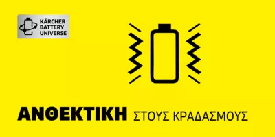 Τα περιβλήματα των μπαταριών της Kärcher διαθέτουν τη μεγαλύτερη δυνατή ανθεκτικότητα στους κραδασμούς και, ως εκ τούτου, παρέχουν άψογη αντοχή στον καταναλωτή.