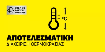 Η αποτελεσματική ρύθμιση της θερμοκρασίας και το έξυπνο σύστημα διαχείρισης μπαταρίας δίνει τη δυνατότητα για υψηλές αποδόσεις σε εφαρμογές που απαιτούν μεγάλη ισχύ. Μόλις η θερμοκρασία των στοιχείων της μπαταρίας βρεθεί εκτός του επιτρεπόμενου εύρους θερμοκρασιών εμφανίζεται ένα σύμβολο θερμοκρασίας και η μπαταρία θα σταματάει να φορτίζεται.